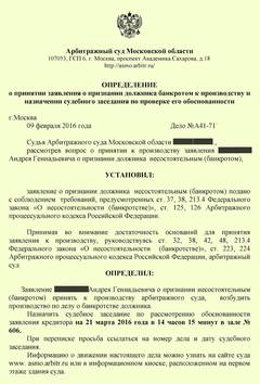 Если общие требования к документам соблюдены, судья обязан принять их к производству. Это означает, что будет назначено первое заседание суда, где проверят обоснованность заявления и решат, нужно ли проводить следующие процедуры по банкротству.